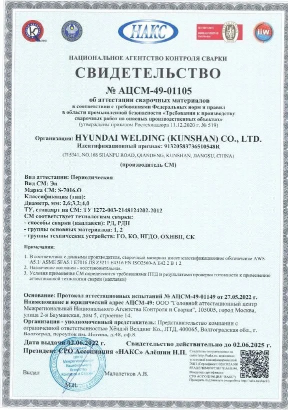 - Сертификация: НАКС