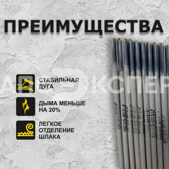 Характеристики электродов: При сварке электроды S-6013.LF выделяют на 20% меньше дыма, чем другие электроды с аналогичным покрытием, и обеспечивают отличное качество сварки во всех пространственных положениях. Электроды S-6013.LF обладают высокой стабильностью горения дуги, легким отделением шлаковой корки, красивым (гладким) внешним видом шва.
